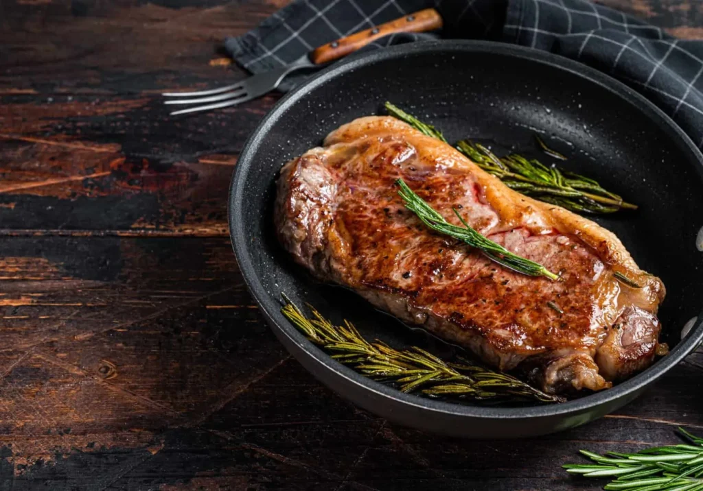 $40.00 / person New York strip steak with caramelized onion sauce and Gorgonzola butter. Served with a potato cake and seasonal vegetables.